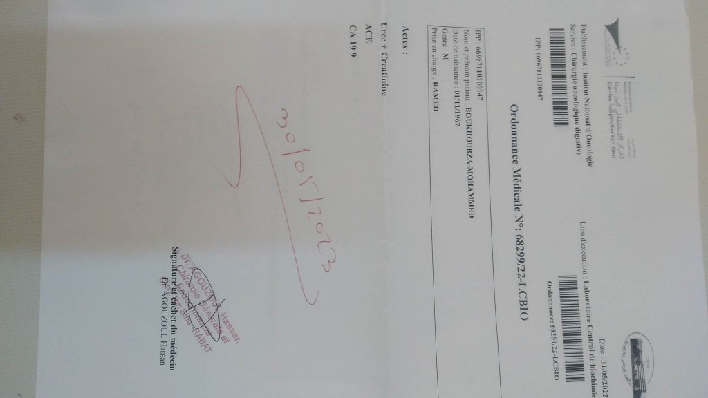 I am still pursuing treatment at the Oncology Institute in Rabat, and I am residing in Tangier.
